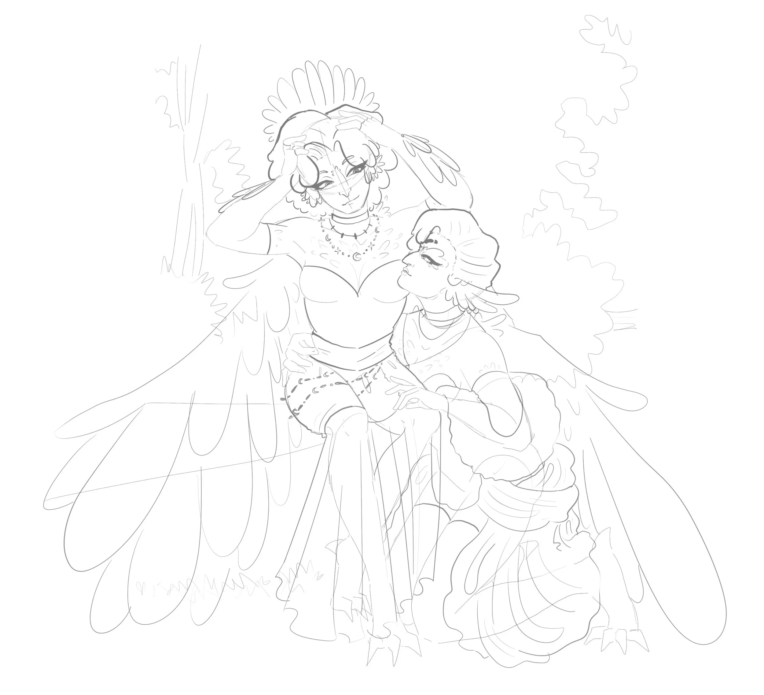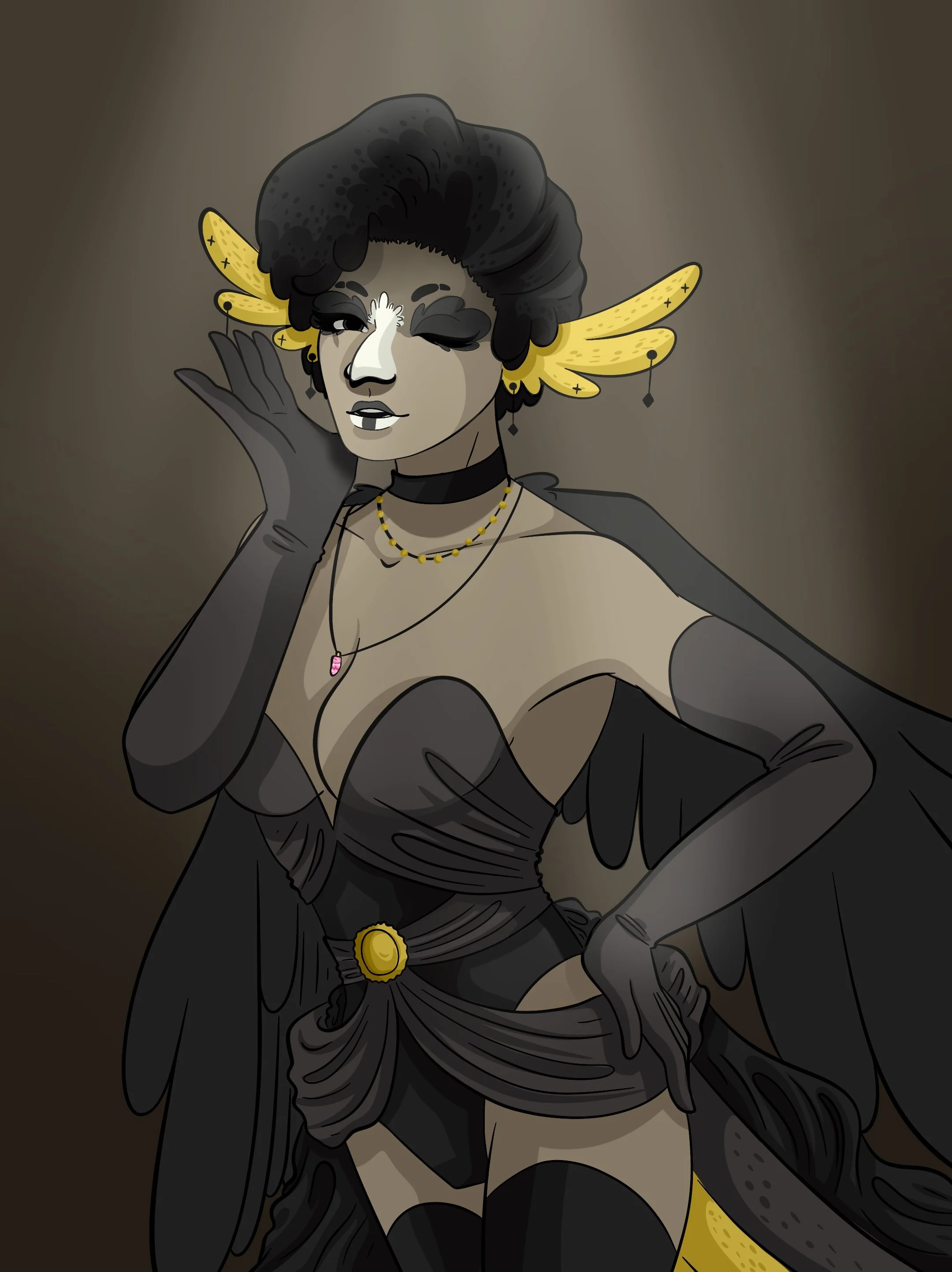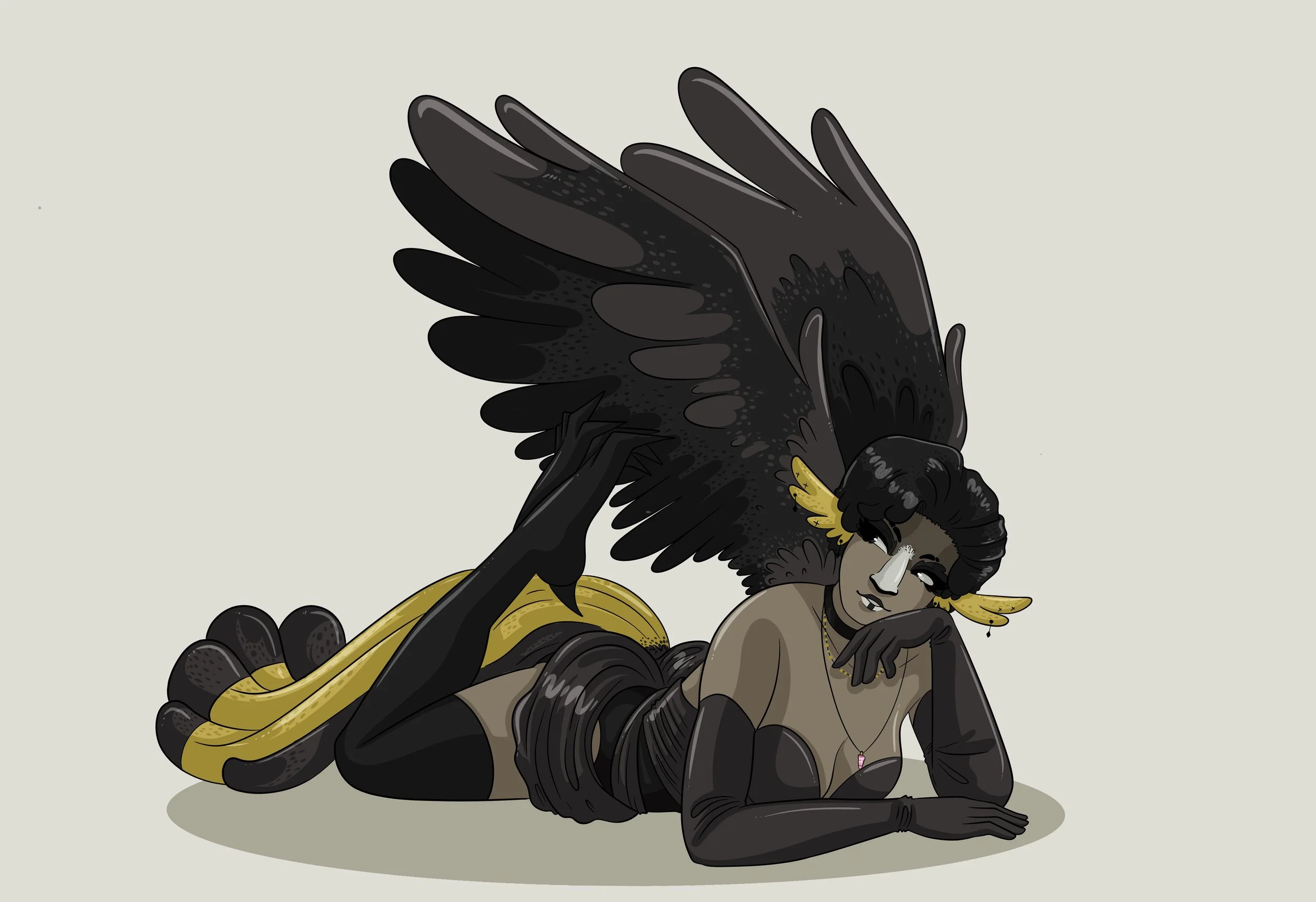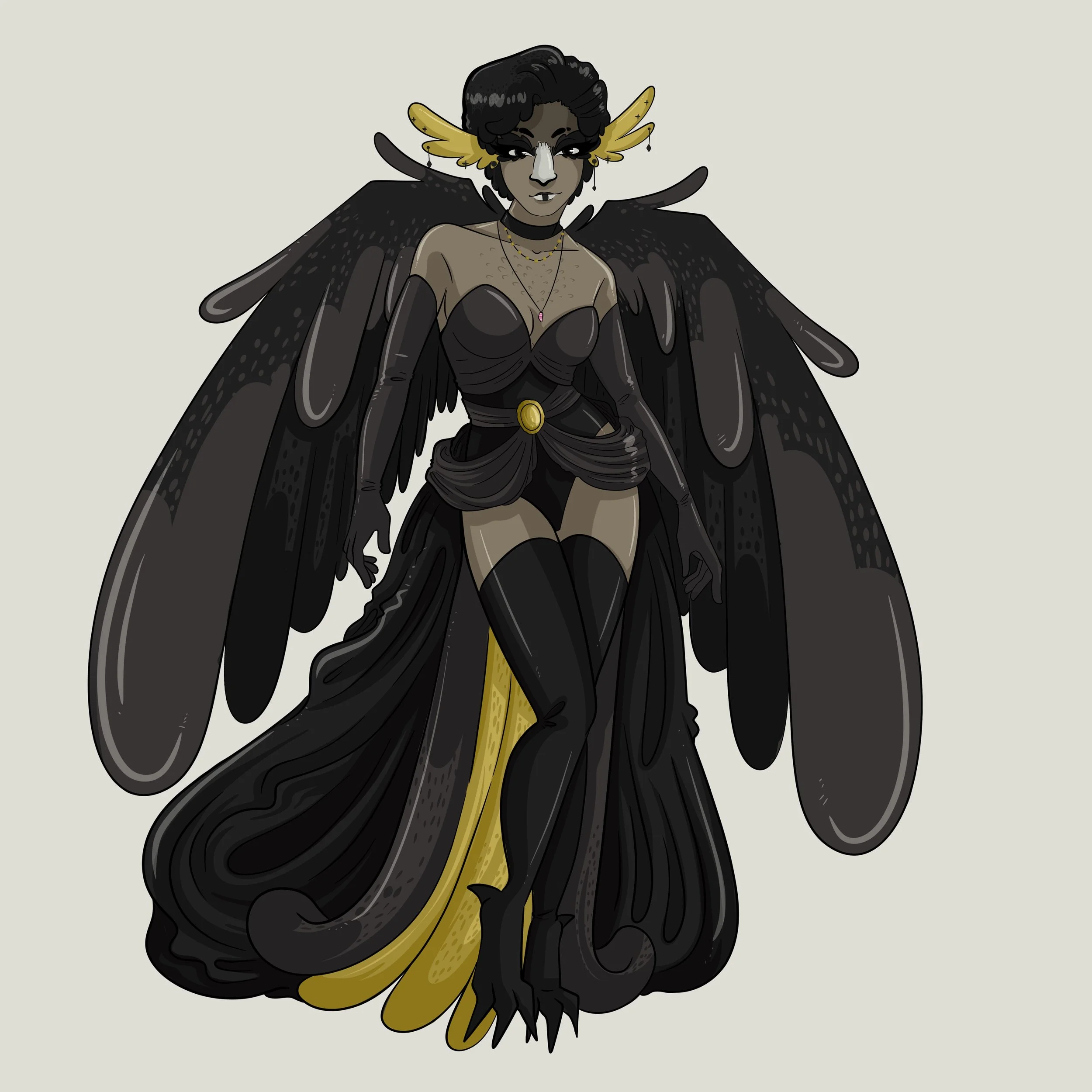 Backstory: Ghalia, much like Aravis, is one of the most popular students at the academy, particularly for her beauty. She often works as a model for artists and designers, which has taken her far in avian society alongside her partner, the famous burlesque dancer Ophelia Rose. She is very skilled at reading lunar runes and dream interpretation, and is closely connected with the royal court, observing the King Liraz closely. Ghalia and Aravis are childhood best friends, with Aravis seeing Ghalia’s father as a mentor and second father figure for him. The two were practically raised as siblings, with Aravis having no parents of his own. It was the death of Ghalia’s father during a skirmish with the inhabitants of Ru’Ann that pushed her and Aravis to strive to rise in the ranks of Harporian society, and uncover the truth behind her father’s death. If they solve this lifelong mystery, perhaps they can begin to unfold what else the king has been hiding, and why he is tormented with so many nightmares, and why he pushes so hard for the extermination of the citizens of Ru’Ann.