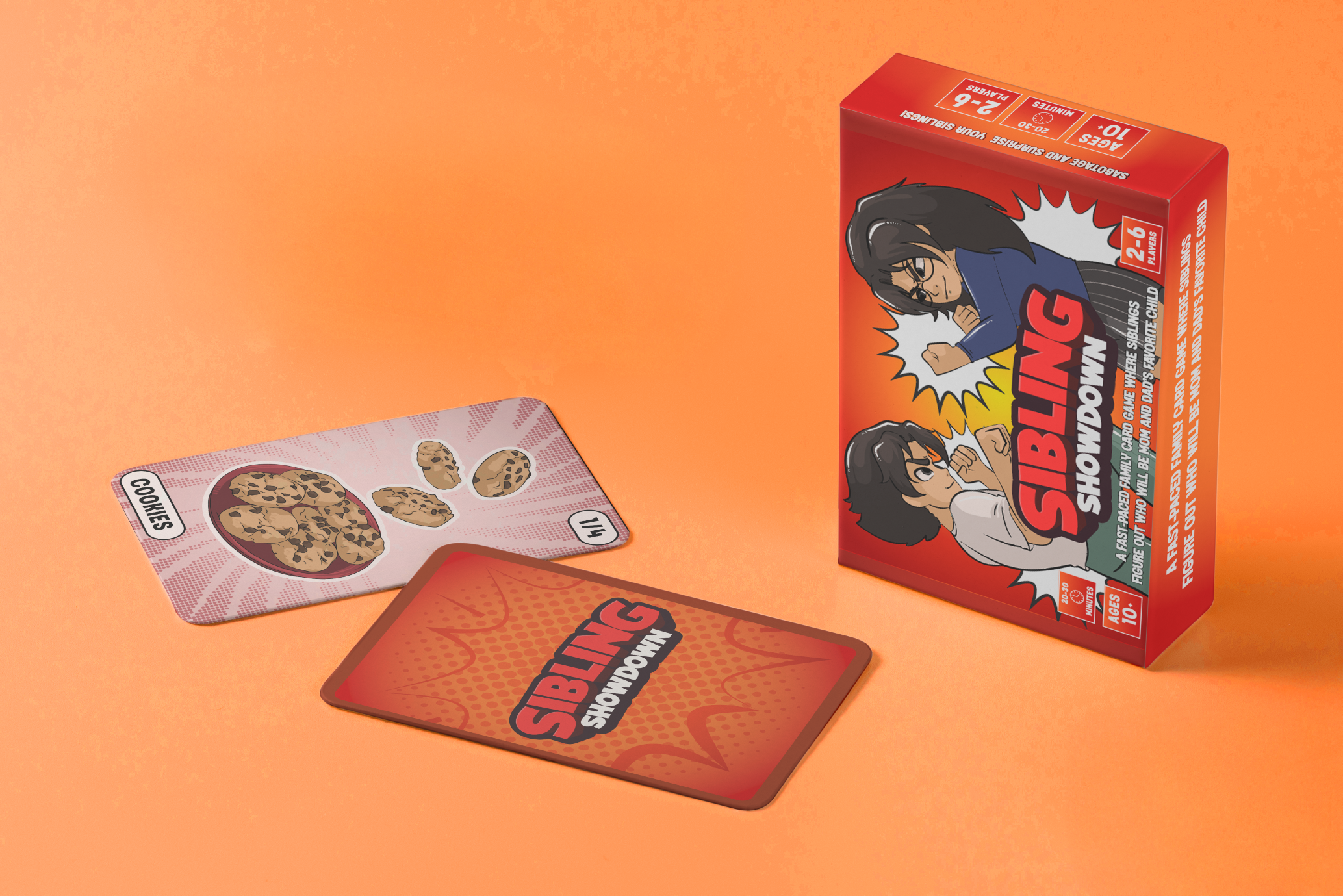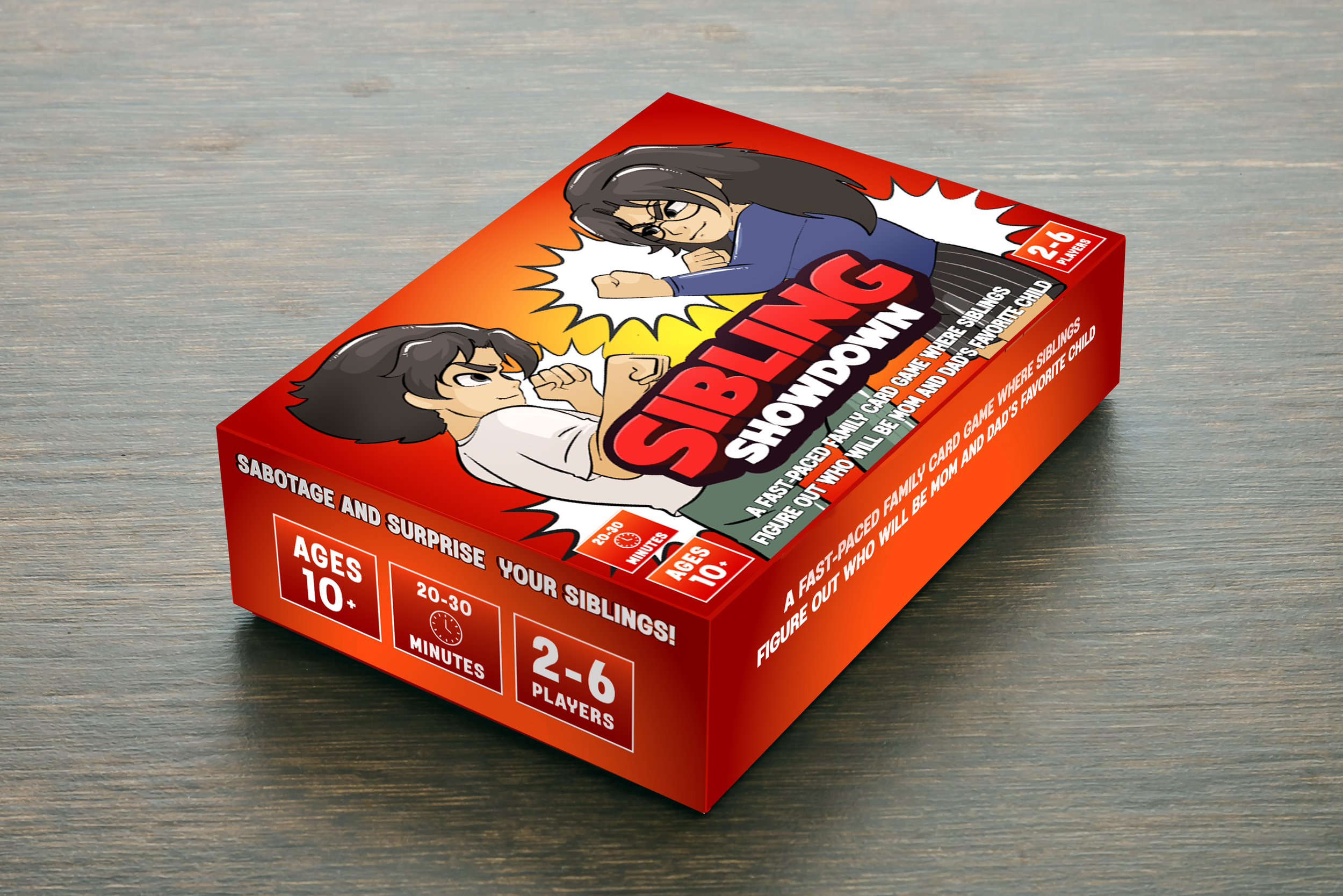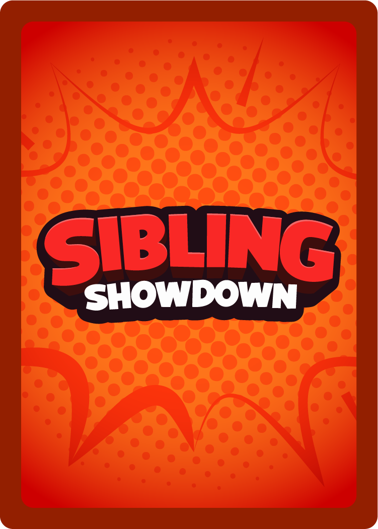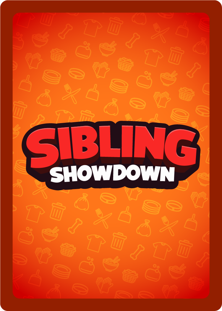 Sibling Showdown is a brand new, fast paced card game for family and friends where players fight to collect items, complete tasks, and earn points to become the best “sibling” in the family. It’s an action packed experience that includes bluffing, stealing cards, playing attack and defense cards, and completing chore cards!