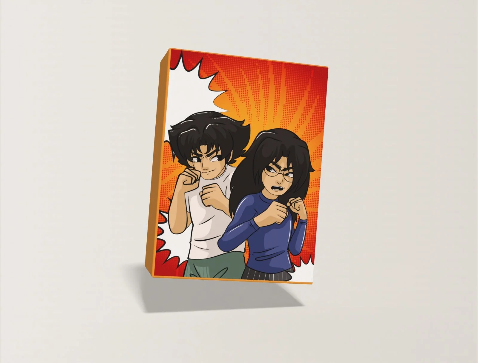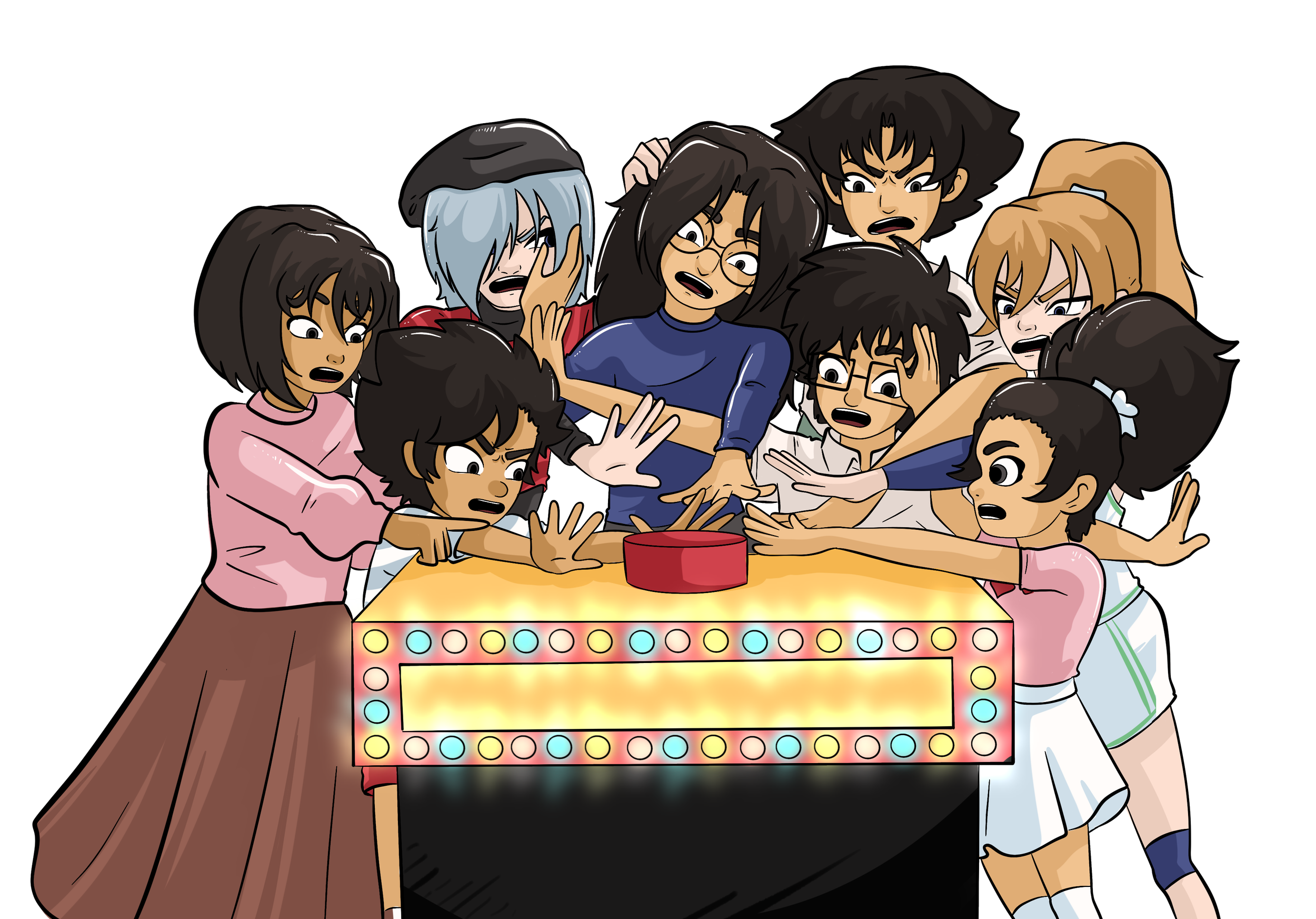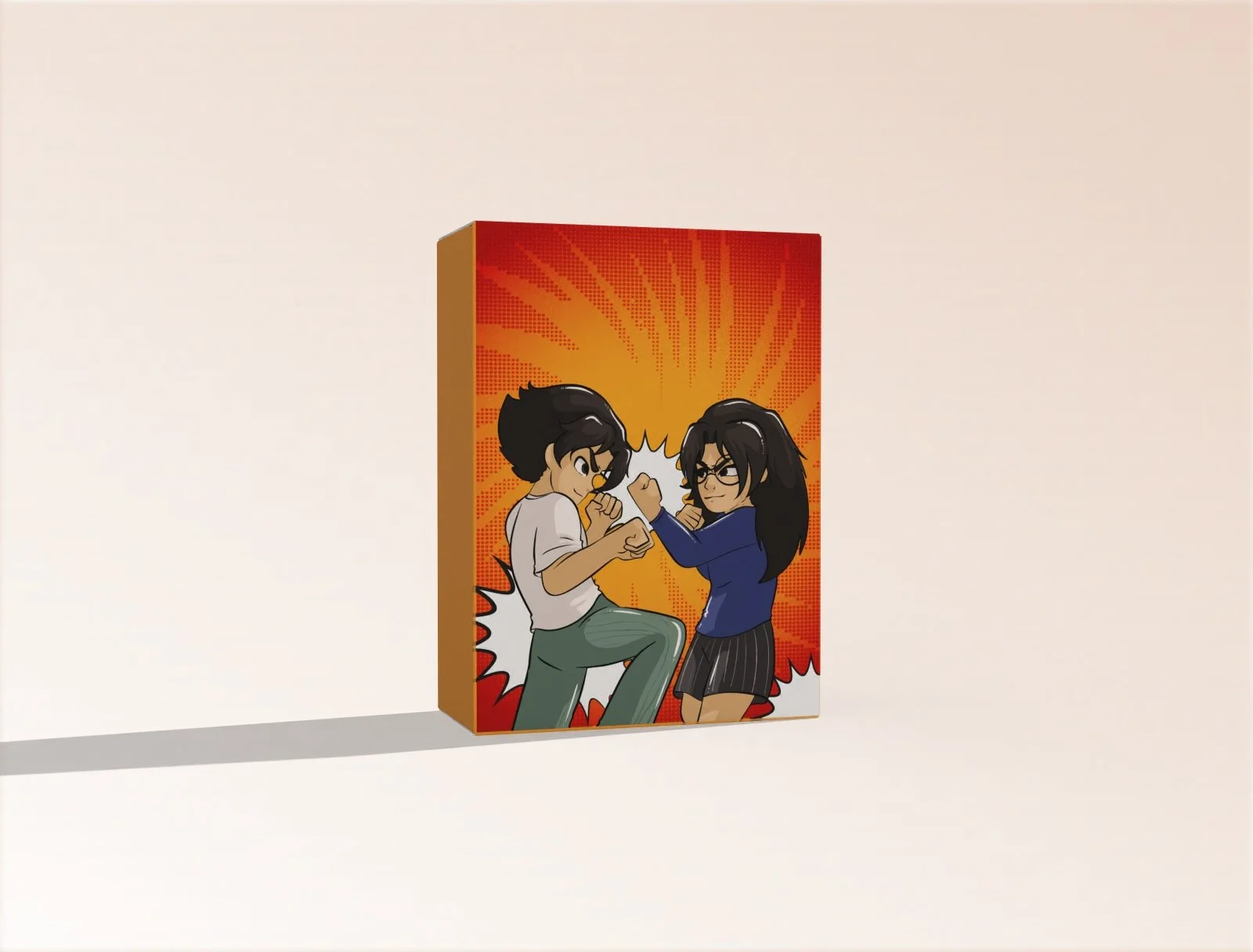 This project challenged me to create a new custom character design style outside my normal illustration style, illustrate many conventional (and not so conventional) items, and create scenes and character interactions. I also created and pitched branding concepts for the game, developed the packaging, arrange the layout of the cards, and created a cast of eight unique siblings each with different special powers in collaboration with the game’s developer.
