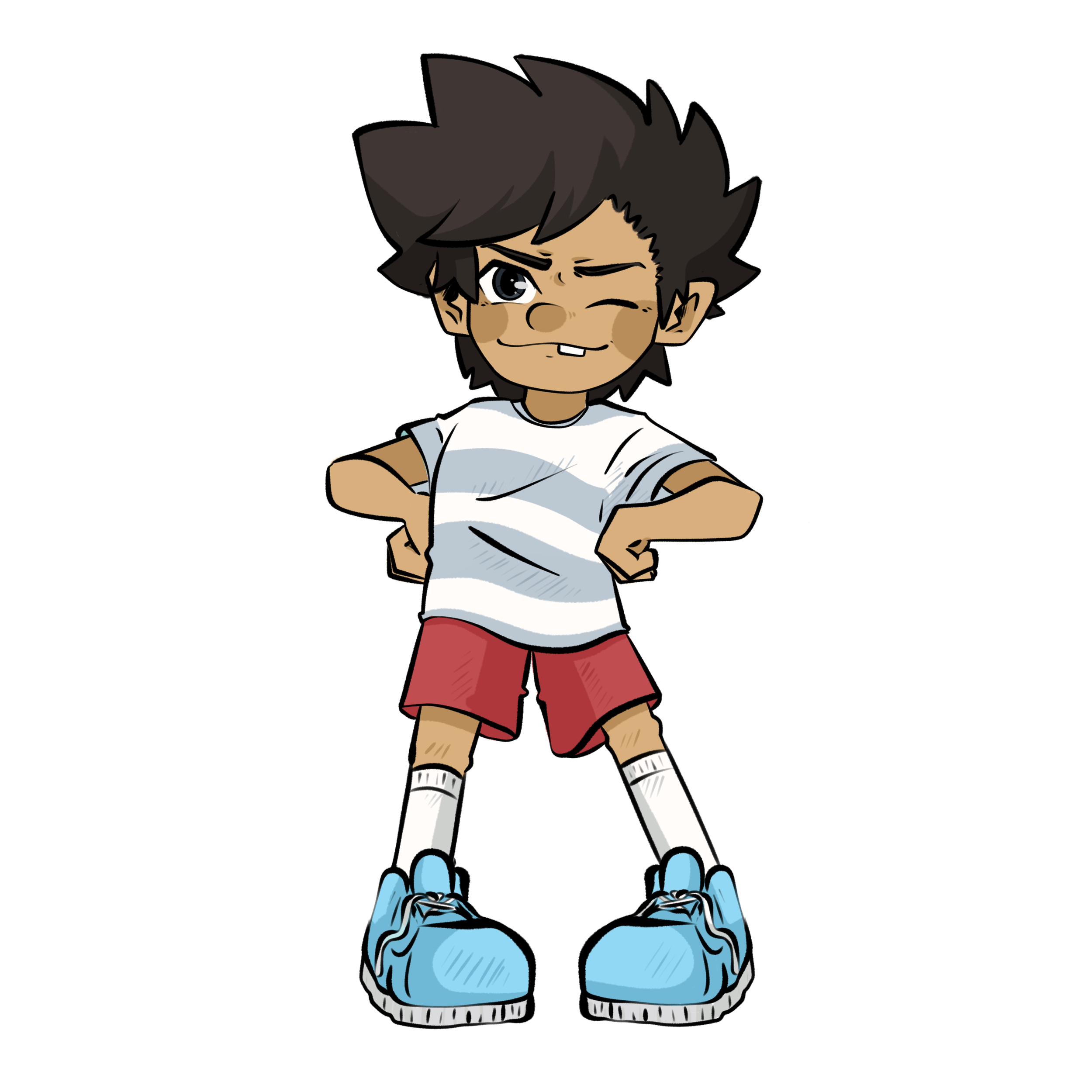 Before any other work was done, my first task was to create the visual style for the set of characters we would be playing as in the game, along with the designs for the characters themselves. I went through several phases of designs, concept work, and revisions before we settled on the final designs for this competitive set of siblings. Here’s a brief look at all the phases that I went through while crafting these characters!