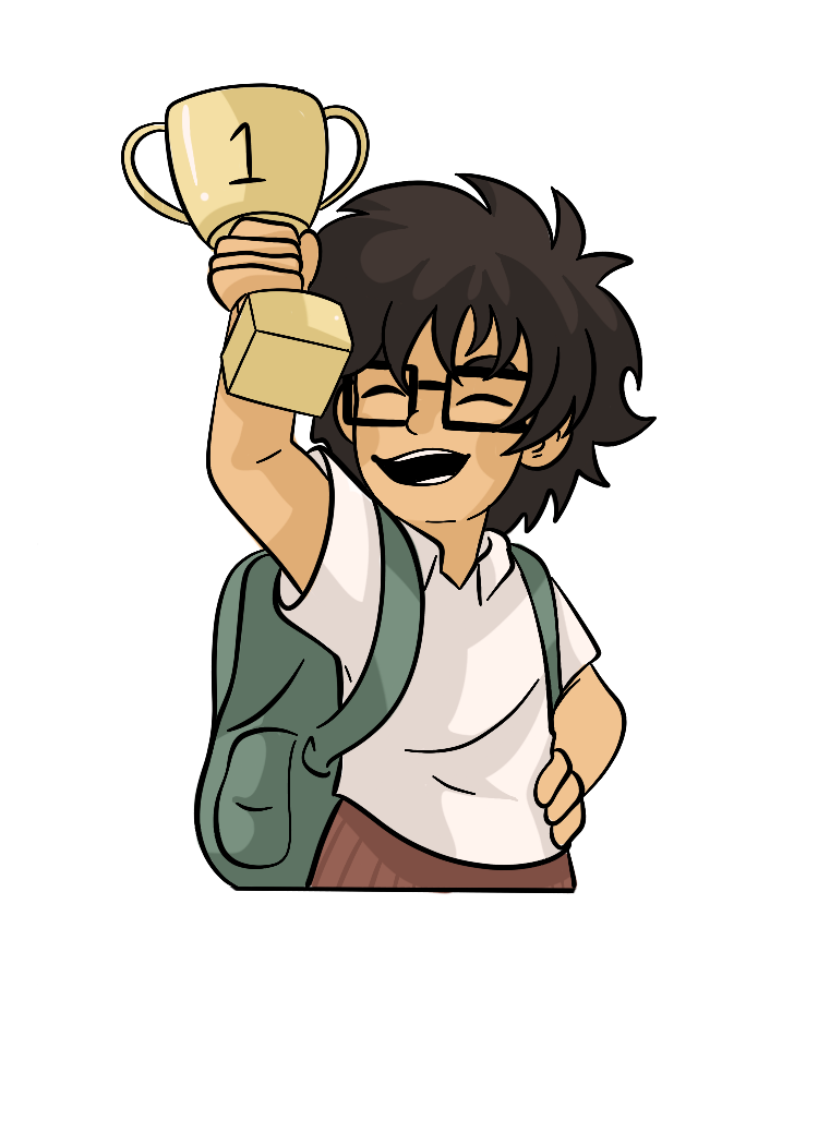 These are the middle siblings! They’re both shyer siblings, and will often be illustrated as the victims in situations where they’re competing with or failing to do a task with another sibling. The middle sister is a high school freshman, and the middle brother is in middle school!